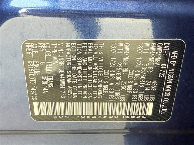 JN8BT3BA4NW041733Stock #
