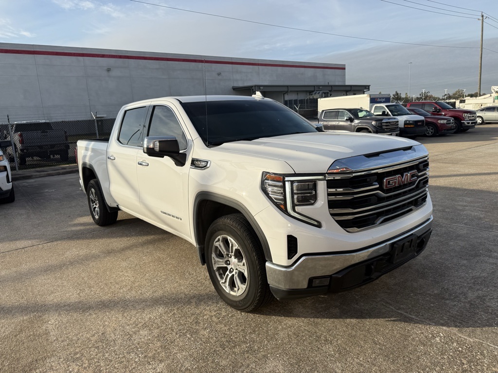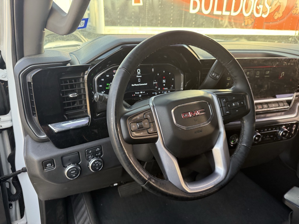 AUDIO SYSTEM, 13.4 DIAGONAL PREMIUM GMC INFOTAINMENT SYSTEM WITH GOOGLE BUILT IN APPS SUCH AS NAVIGATION AND VOICE ASSISTANCE, INCLUDES COLOR TOUCH-SCREEN, MULTI-TOUCH DISPLAY, AM/FM STEREO Bluetooth® streaming audio for music and most phones; featuring wireless Android Auto® and Apple CarPlay® capability for compatible phones (STD), ENGINE, 5.3L ECOTEC3 V8 (355 hp [265 kW] @ 5600 rpm, 383 lb-ft of torque [518 Nm] @ 4100 rpm); featuring Dynamic Fuel Management (STD), (COLUMN SHIFTER) ELECTRONICALLY CONTROLLED with overdrive and tow/haul mode. Includes Cruise Grade Braking and Powertrain Grade Braking (STD). GMC SLT with Summit White exterior and Jet Black interior features a 8 Cylinder Engine with 355 HP at 5600 RPM*.