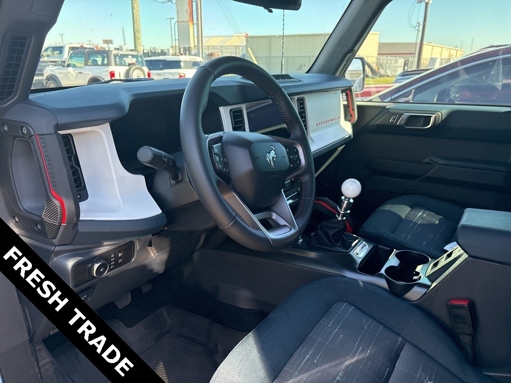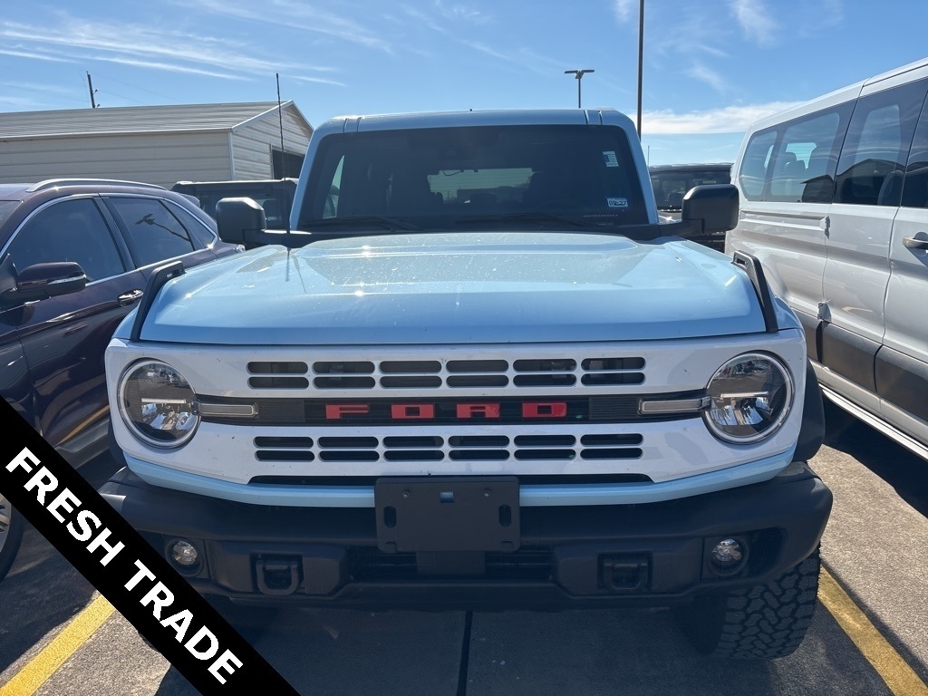 Recent Arrival! CARFAX One-Owner. Blue 2025 Ford Bronco Heritage Edition 4WD 7-Speed Manual 2.3L EcoBoost I-4 Equipment Group 662A Mid Package, 4-Wheel Disc Brakes, 7 Speakers, ABS brakes, Air Conditioning, Alloy wheels, AM/FM radio: SiriusXM with 360L, AM/FM Stereo, Auto High-beam Headlights, Auto-dimming Rear-View mirror, Automatic temperature control, Brake assist, Compass, Connected Navigation, Convertible HardTop, Convertible roof lining, Delay-off headlights, Driver door bin, Driver vanity