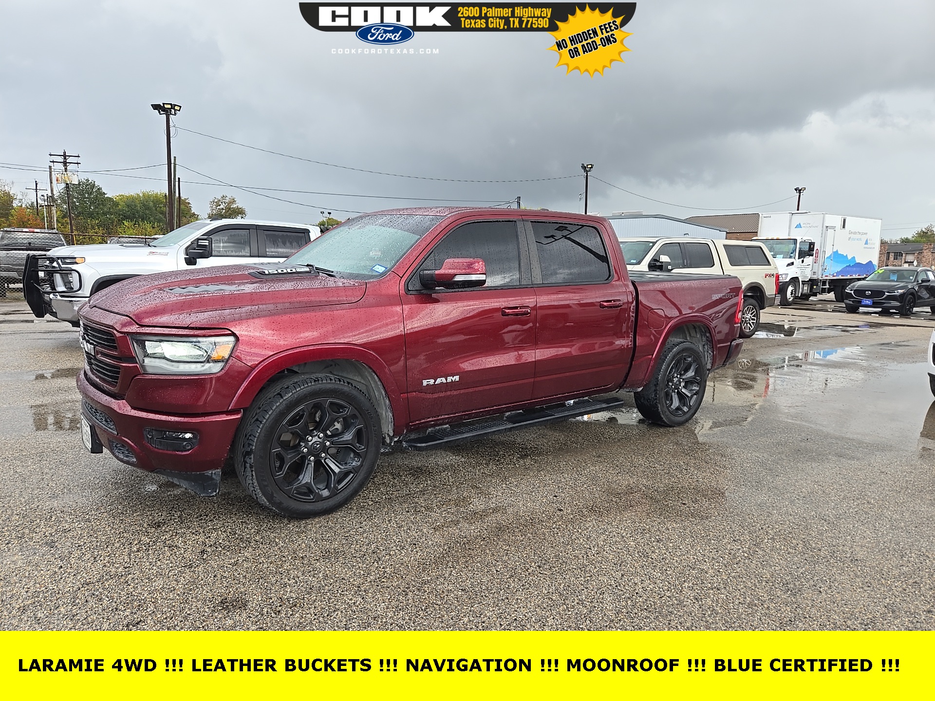 Certified. Delmonico Red Pearlcoat 2021 Ram 1500 Laramie 4WD 8-Speed Automatic HEMI 5.7L V8 Multi Displacement VVT Auto High Beam Headlamp Control, Black Interior Accents, Body Color Door Handles, Body Color Exterior Mirrors, Body Color Front Bumper, Body Color Premium Power Mirrors, Body Color Rea